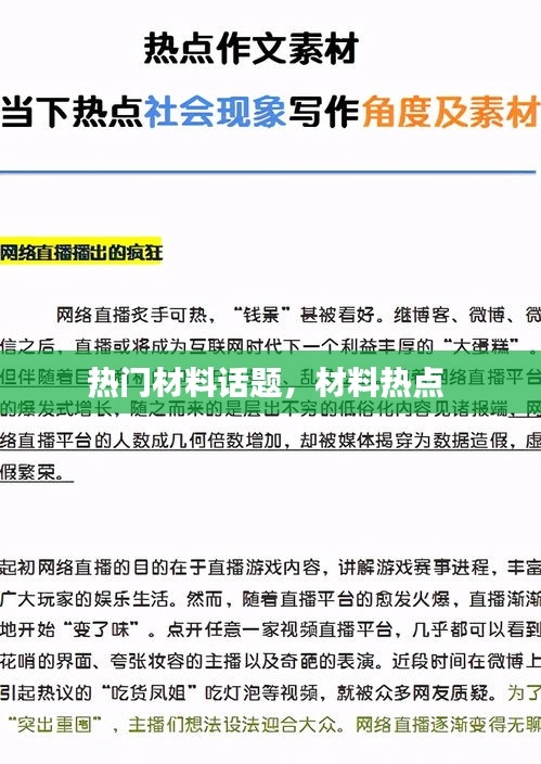 随着科技的飞速发展,材料科学正经历着一场前所未有的变革。新型材料的研发和应用不断突破传统材料的局限,为各行各业带来了巨大的变革。本文将探讨当前热门的材料话题,包括纳米材料、生物材料、复合材料和智能材料等。