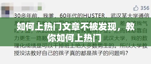 在互联网时代,一篇热门文章往往能带来巨大的流量和影响力。然而,许多人希望自己的文章能够上热门,但又不想被他人发现。本文将探讨如何在上热门文章的同时,保持匿名性或降低被发现的风险。