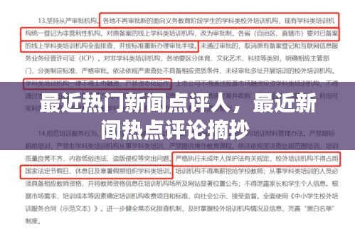 随着互联网的快速发展,新闻传播速度越来越快,各种热点事件层出不穷。在这样的背景下,一批具有专业素养和独特视角的点评人应运而生。他们凭借对新闻事件的敏锐洞察力和深入分析,成为了公众关注的焦点。本文将针对最近热门新闻点评人进行点评,探讨他们的特点及影响力。