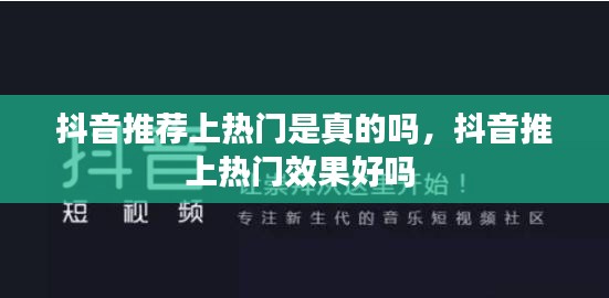 抖音上热门通常指的是视频内容在推荐页面上获得较高的曝光量,从而吸引更多用户观看和互动。关于抖音推荐上热门的真实性,我们可以从以下几个方面进行分析: