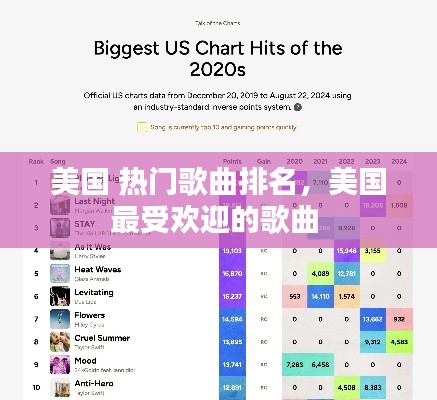 美国作为全球音乐产业的重要中心,拥有庞大的音乐市场和多元化的音乐风格。每年,美国各大音乐排行榜都会更新,展示最新的热门歌曲。这些排行榜不仅反映了流行趋势,也见证了音乐人的崛起和经典作品的流传。