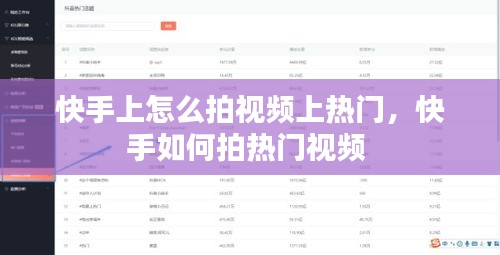 在快手平台上拍视频上热门,需要综合考虑多个因素。通过了解热门机制、选择热门话题、优化视频标题和封面、提高视频质量、互动与推广以及持续优化与调整,你将更有可能让你的视频在快手平台上获得关注和喜爱。祝你在快手平台上取得成功!