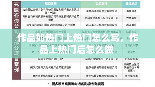 写出一部热门作品并非易事,需要作者具备敏锐的洞察力、丰富的想象力以及扎实的写作功底。通过理解热门作品的特点,深入挖掘主题,构建引人入胜的故事情节,运用多种表达手法,注重细节描写,优化作品结构,以及有效的互动与推广,相信你的作品也能成为热门之作。