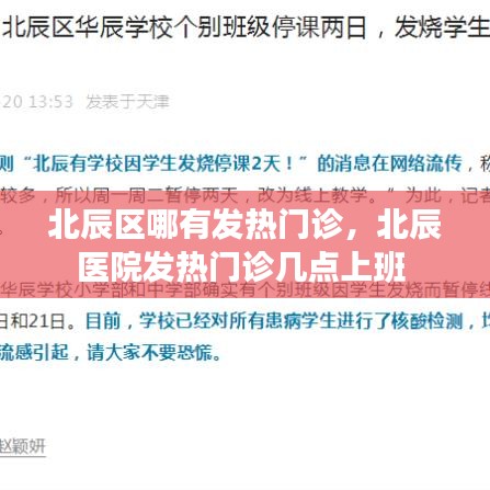 以下是北辰区主要的发热门诊列表,包括医院名称、地址、联系电话等信息,方便居民在需要时快速找到医疗服务点。