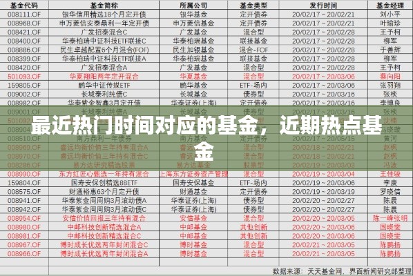 随着市场的波动和投资者需求的多样化,基金市场总是充满了各种热门时间点。这些时间点往往伴随着特定的市场趋势或政策变化,吸引了大量投资者的关注。本文将为您盘点近期市场上热门的时间点以及与之对应的基金产品。