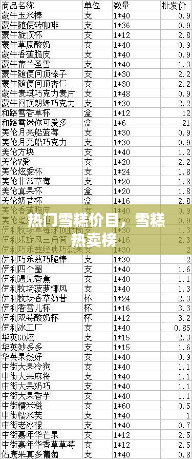随着夏季的到来,雪糕成为了许多人消暑解渴的首选。市场上各种品牌的雪糕琳琅满目,以下是一些目前市场上热门的雪糕品牌,让我们一起来看看它们的价目表吧。