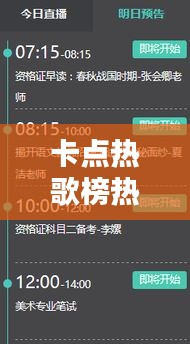 在音乐的海洋中,卡点热歌榜成为了众多乐迷关注的焦点。这个榜单不仅反映了当下流行音乐的最新趋势,更是年轻一代表达自我、追逐潮流的重要途径。卡点热歌榜上的热门音乐,往往具有鲜明的时代特色和广泛的受众基础。