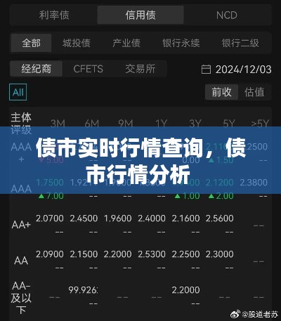 债市实时行情查询是指投资者通过金融服务平台或者专业软件,实时获取债券市场的最新价格、收益率、成交量等信息。在债券市场中,实时行情对于投资者来说至关重要,因为它可以帮助投资者及时了解市场动态,做出更为明智的投资决策。