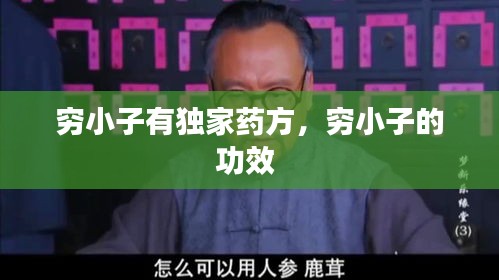 穷小子,这个看似弱势的群体,却拥有独特的独家药方。他们用坚韧不拔的意志力、勤奋好学的精神、善于发现机遇的眼光、乐观积极的人生态度、善于合作的精神和感恩的心态,在逆境中崛起,成为逆袭路上的英雄。他们的故事告诉我们,只要拥有这些独家药方,每个人都能实现自己的梦想,改变命运。