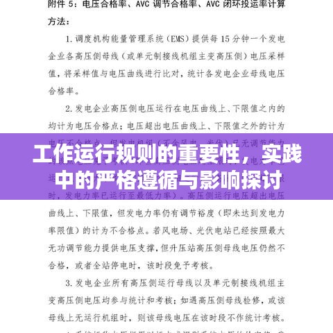 工作运行规则,是一套指导组织运行和工作开展的规范体系,它明确了工作职责、工作流程、工作标准等内容,为组织的高效运行提供了基础保障,而从严落实工作运行规则,则意味着在实际工作中,要严格遵守这些规则,确保规则的执行力,从而达到预期的工作效果。