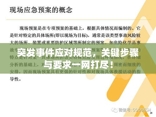 突发事件是指突然发生、对公共安全、社会稳定或生产活动造成重大影响的事件,为了有效应对各类突发事件,保障人民群众的生命财产安全,维护社会稳定,我们必须制定和实施规范的突发事件应对要求,本文旨在阐述突发事件的规范要求,提高应对突发事件的能力和水平。