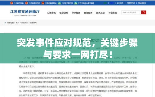 规范要求对于有效应对突发事件具有重要意义,我们应建立健全预警机制,制定应急响应和处置流程,加强协调配合和信息发布,实施有效措施,确保规范要求的落实,我们还要不断提高公众对应急管理工作的认识,加强培训教育和队伍建设,提高应对突发事件的能力和水平,只有这样,我们才能更好地应对和处置各类突发事件,保障人民群众的生命财产安全,维护社会稳定。