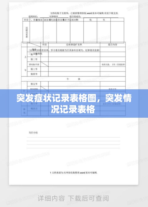 在日常生活中,我们可能会遇到各种突发症状,这些症状可能是轻微的,也可能是严重的。为了及时了解症状的严重程度和进展,记录突发症状的详细信息变得尤为重要。本文将介绍一种突发症状记录表格图,帮助人们更好地管理个人健康信息。