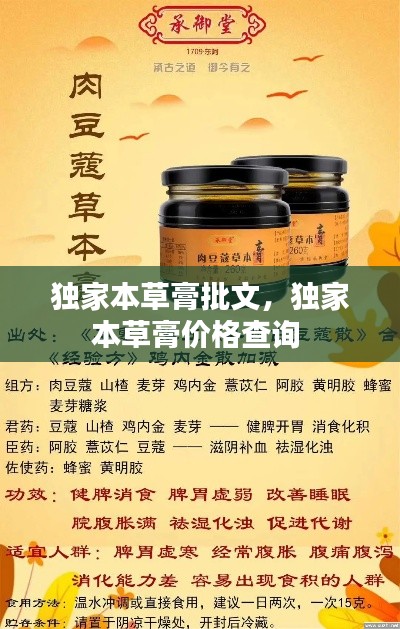 - 批准颁发:若企业通过审查,国家药品监督管理局将批准颁发独家本草膏批文。