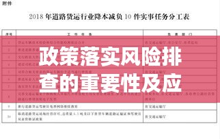 政策落实风险排查是确保政策有效实施、维护社会稳定的关键环节,我们应高度重视风险排查工作,采取科学的方法和策略,及时发现和解决政策落实过程中的问题和隐患,为政策的顺利实施提供有力保障。