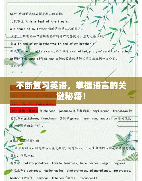 语言学习是一个长期且复杂的过程,需要通过不断的实践、应用和复习来巩固所学知识,英语的学习不仅包括词汇、语法、听说读写等基本技能的掌握,还包括对这些知识的运用和复习,不断复习英语的重要性体现在以下几个方面: