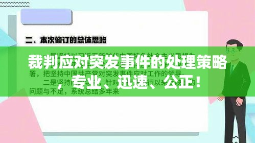 裁判处理突发事件的能力对于保障活动的顺利进行和参与者的安全至关重要,面对突发事件,裁判应保持冷静,迅速评估,沟通协作,遵循预案,记录报告,通过培训和演练、提高心理素质、积累经验以及与相关部门合作等方式,提高应对突发事件的能力,只有这样,才能更好地履行裁判的职责,为活动的顺利进行提供保障。