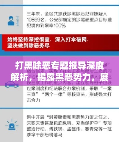 近年来,我国社会治安形势严峻,黑恶势力活动有所抬头,为了维护社会稳定,保障人民群众生命财产安全,我单位深入开展了打黑除恶专项行动,本文旨在汇报近期打黑除恶专题报导的进展情况和成果。