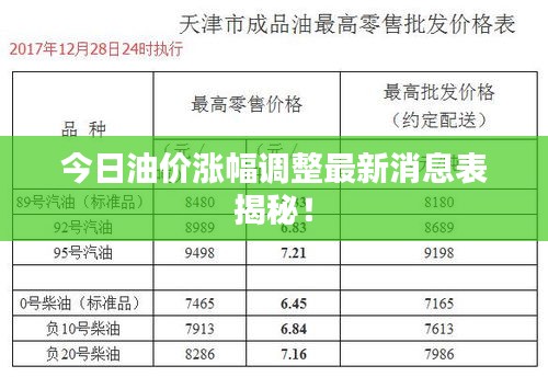 随着全球经济逐渐复苏,石油市场的动态变化日益受到人们的关注,油价涨调成为了公众关注的焦点,本文将对今日油价涨调最新消息表进行解读,并分析其对市场及消费者产生的影响。