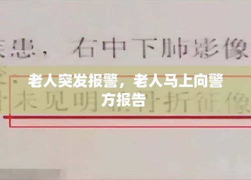 总之,老人突发报警事件为我们敲响了警钟。我们要时刻关注自身和他人的安全,提高应对突发事件的能力,共同营造一个安全、和谐的社会环境。
