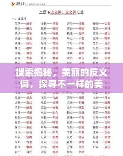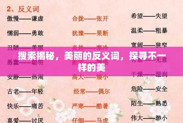 在生活中,我们经常会遇到各种词汇,了解这些词汇及其反义词有助于我们更深入地了解语言和文化,通过探寻“漂亮的反义词”,我们不仅能更好地理解“漂亮”这个词的含义,还能拓宽我们的视野,学会欣赏和接纳不同的事物,希望这篇文章能为你带来启发,让你更深入地了解汉语的魅力。
