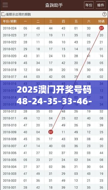 澳门特别行政区为庆祝澳门回归祖国XX周年,特别举办2025年澳门开幕式系列庆典活动。其中重要活动为澳门开奖号码摇号,活动将秉持公平、公正、公开的原则,为澳门公民提供一个喜庆祥和的节日氛围。本次活动的开奖号码为48-24-35-33-46-39,特别号码为07,为体现澳门特别行政区特色而设定。