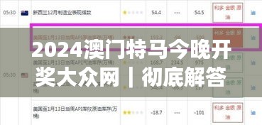 标题:2024澳门特马今晚开奖公告及大众网政策解答