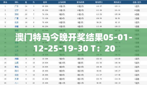 标题:澳门特马今晚开奖结果05-01-12-25-19-30 T:20