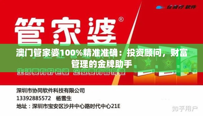 “澳门管家婆100%精准准确:投资顾问,财富管理的金牌助手”行动计划旨在培育世界领先的财富管理和投资顾问团队,全面提升财富管理企业的服务质量与水平。