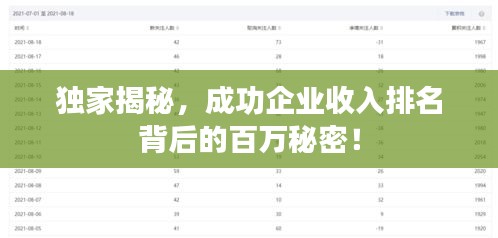 随着全球经济的发展,每年都有数以百万计的公司通过各种方式实现盈利,这些公司在各自的行业中发挥着重要作用,为全球经济贡献了巨大的力量,本文将深入探讨百万公司收入排名背后的故事,揭示成功企业的秘密。