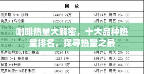 咖啡,一种世界闻名的饮品,深受人们的喜爱,除了独特的口感和香气,咖啡还承载着许多不同的文化内涵,而对于关注健康与营养的我们,了解咖啡的热量含量显得尤为重要,本文将为您揭晓咖啡大卡排名前十名,带您一探热量之最。