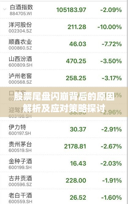 在股票市场中,尾盘突发闪崩是一种令人措手不及的现象,它常常在交易日的尾盘时段突然发生,股价在短时间内急剧下跌,给投资者带来巨大损失,本文将对股票尾盘突发闪崩的原因、应对策略以及投资者的注意事项进行深入探讨。