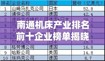 南通,位于中国东部沿海,是一个享有盛名的工业城市,在众多的产业中,南通机床产业尤为突出,孕育了一批国内外知名的机床企业,本文将为您详细介绍南通机床产业排名前十强企业。