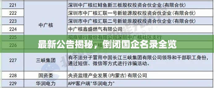 随着全球经济形势的不断变化,企业经营环境日趋复杂,一些国有企业因各种原因面临倒闭风险,国家相关部门发布了最新的倒闭国企名录公告,引起了社会各界的广泛关注,本文将围绕“倒闭国企名录最新公告查询”这一主题展开,介绍相关背景信息、详细解析公告内容、提供查询方法,并探讨其影响及应对措施。