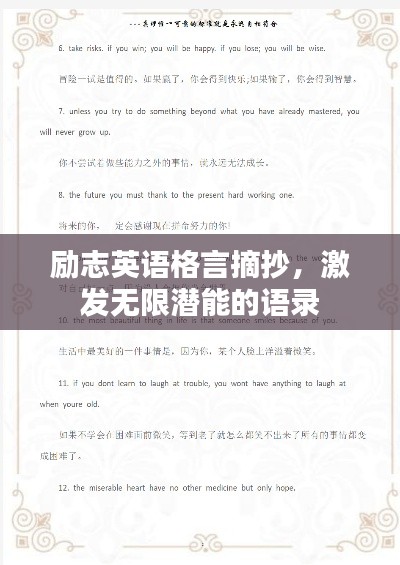 人生如同一场旅程,励志语录如同旅途中的明灯,指引我们前行,以下是一些英语格言励志语录摘抄,让我们一起汲取力量,勇往直前。
