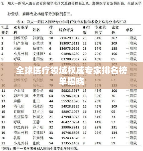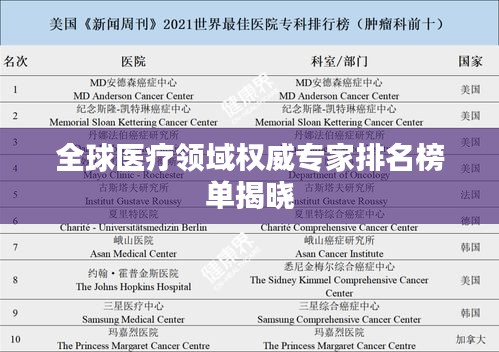 在全球医疗领域,一些杰出的医疗专家和机构以其卓越的贡献、创新的研究和无私的奉献,赢得了全球医疗界的广泛赞誉和尊重,以下是世界医疗界大佬排名榜,介绍一些在医疗领域具有重要影响力和突出贡献的人物和机构。