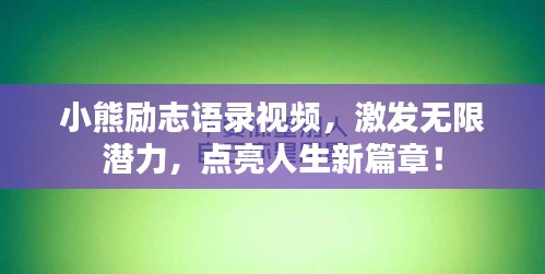 在这个充满活力和创意的时代,我们总能从各种渠道获取正能量和动力。“小熊励志语录视频”以其独特的方式,激励着一代又一代的人们勇往直前,追求梦想。