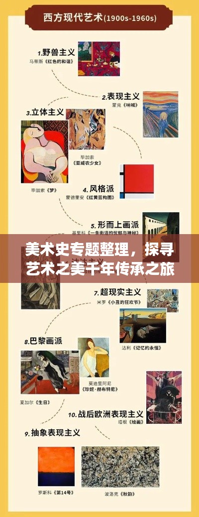 美术史专题整理是一个深入了解艺术发展历程的过程,通过梳理不同时期的艺术风格、分析代表性作品,我们能够更好地理解艺术的内涵与价值,专题整理也是一次探索与发现的过程,让我们在欣赏艺术作品的同时,感受到美术史的魅力所在,希望本文能为读者提供一个了解美术史发展的视角,共同探寻艺术之美的发展历程。