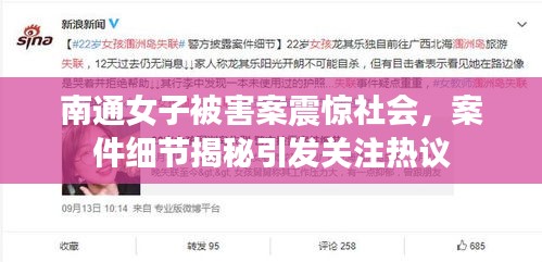 南通市一起女子被害案成为当地新闻头条的焦点,这起案件震惊了整个社会,引起了广泛关注,随着案件的深入调查,相关细节逐渐浮出水面。
