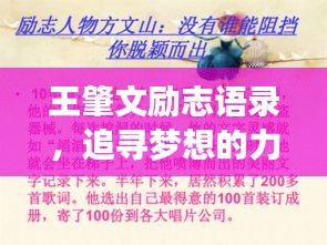 在这个充满挑战与机遇的时代,我们需要一种力量,一种激励我们不断前行的力量,而王肇文的励志语录,正是这样一种力量的源泉,他的语言富有哲理,充满智慧,给我们带来了许多关于追梦的启示和勇气。