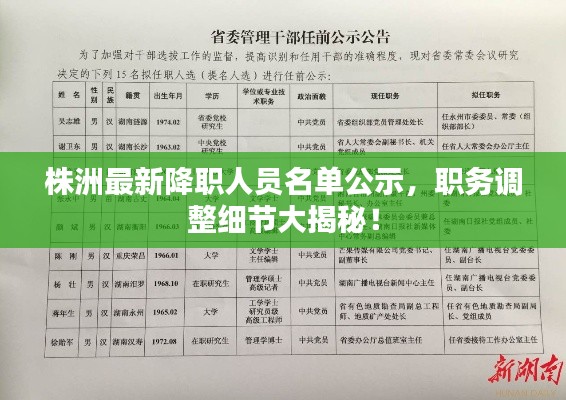 随着反腐败斗争的深入进行,株洲市在维护公职人员队伍廉洁方面取得了显著成效,职务调整是优化组织结构、提高工作效率的重要环节,也是推动党风廉政建设的重要举措之一,在此背景下,株洲市发布降职人员名单的公示,体现了公正公开、透明监督的原则。