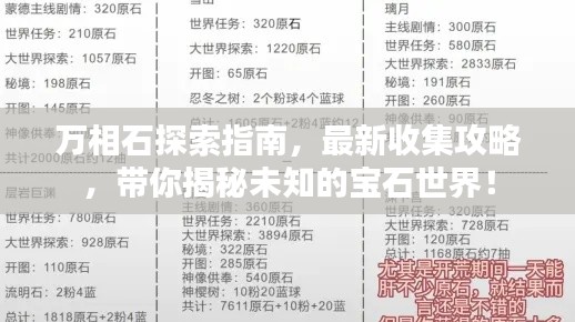万相石,这个充满神秘色彩的宝石,以其独特的美感和稀有性吸引着无数收藏家和探险者的目光,随着市场的日益繁荣和人们对稀有宝石的追求,万相石的收集变得越来越具有挑战性,本文将为你提供一份最新的万相石收集攻略,助你在这片未知的宝石世界中探索、发掘。