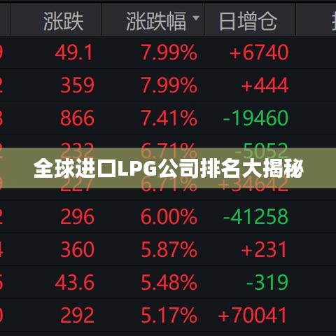 LPG(液化石油气)作为一种清洁、高效的能源,在全球范围内得到了广泛的应用,随着全球能源市场的不断变化,进口LPG公司的竞争也日益激烈,本文将介绍一些在全球进口LPG公司中的佼佼者,以供参考。