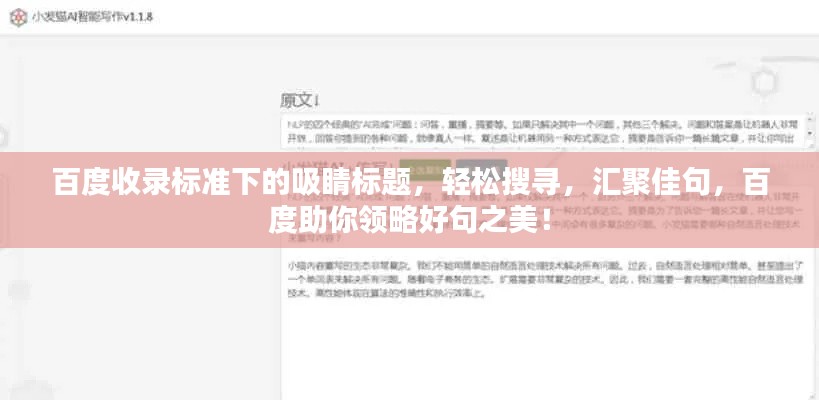 转载请注明来自青州金山泉水处理设备有限公司,本文标题:《百度收录标准下的吸睛标题,轻松搜寻,汇聚佳句,百度助你领略好句之美!》