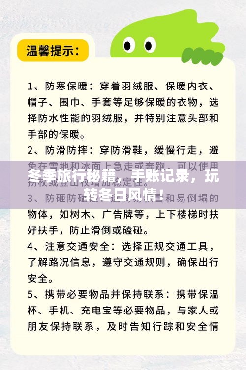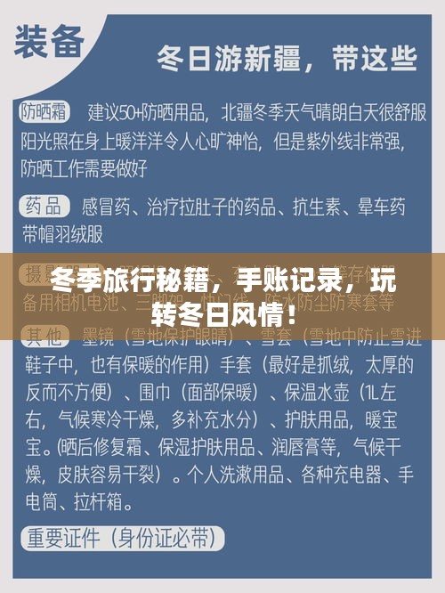 制作一份冬季旅游攻略手帐,不仅可以帮助你更好地规划和享受冬季旅行,还可以让你在旅行中留下珍贵的回忆,希望这份攻略手帐能为你提供一个清晰的指导,让你的冬季旅行变得更加美好,旅行的意义不仅在于目的地,更在于沿途的风景和经历,祝你旅途愉快!