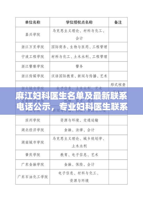 随着人们对健康的关注度不断提高,寻找专业医生的联系方式变得越来越重要,本文将为您介绍麻江地区的妇科医生名单及其最新联系电话,以便您在需要时能够及时联系到专业医生。