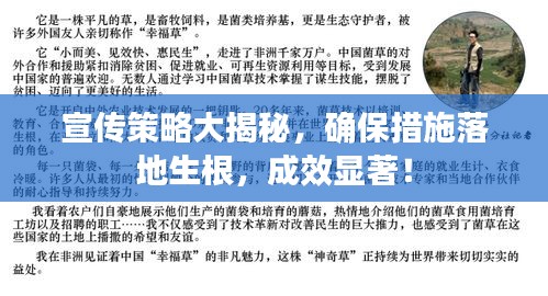 在当今社会,无论是企业发展还是政府工作,宣传与措施落实都是至关重要的环节,宣传是信息传递的桥梁,是凝聚共识的重要手段;而措施的落实则是成果转化的关键,是目标实现的保障,我们必须高度重视“搞好宣传,确保措施落实”这一课题。