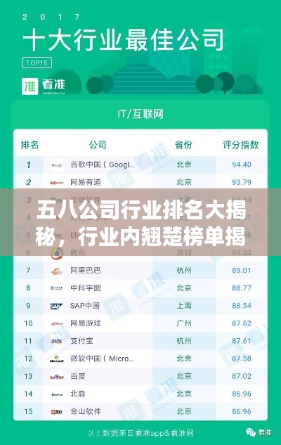 随着科技的飞速发展和市场竞争的加剧,各行各业的公司都在努力提升自身实力,以在激烈的竞争中脱颖而出,作为广大民众关心的焦点之一,各大公司的排名无疑成为了人们关注的焦点,本文将围绕“五八公司排名”这一主题,为您揭示行业内的佼佼者。