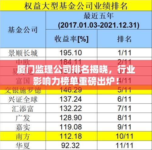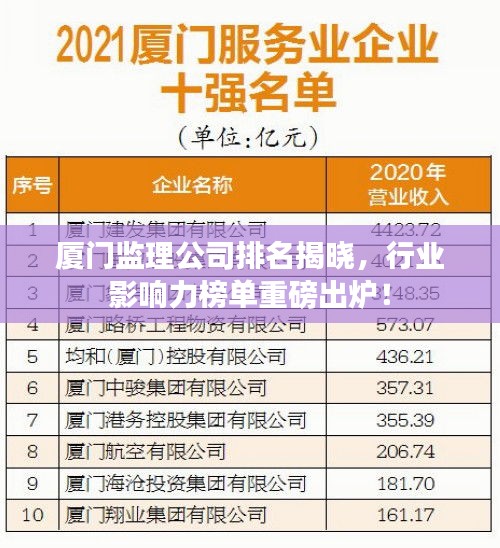 厦门,一座美丽的滨海城市,以其独特的地理位置和繁荣的经济环境吸引了众多企业和人才的汇聚,在建设工程领域,监理公司作为项目管理的核心力量,其重要性不言而喻,本文将探讨厦门监理公司的排名及其行业影响力。