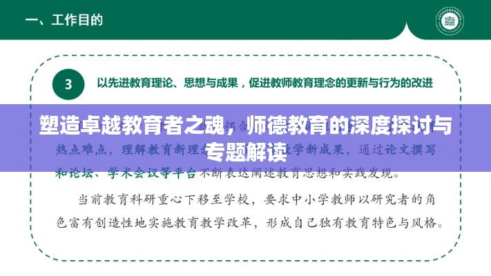 在当今社会,教育事业蓬勃发展,教育工作者肩负着培养未来社会栋梁的重要使命,师德,作为教师的基本素质,在教育工作中起着举足轻重的作用,本文将从师德教育的内涵、意义、实施策略等方面,深入探讨师德教育专题内容,为提高教育质量,塑造卓越教育者灵魂提供借鉴。